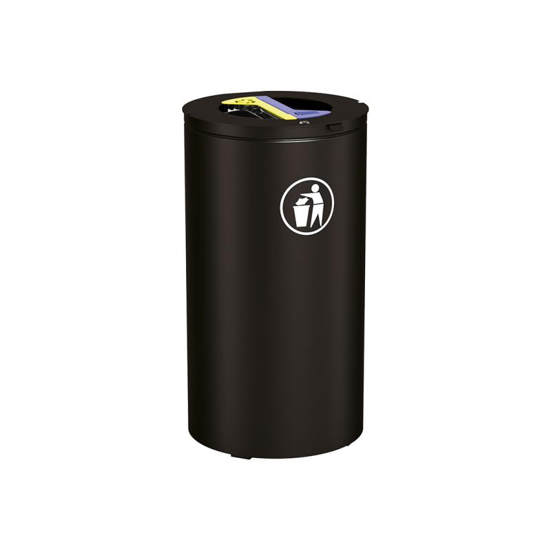 Olbia är ett sopsorteringskärl för källsortering utomhus vid fastigheter, entréer och gemensamma utemiljöer. Med två separata fack för 60-literssäckar skapas en tydlig lösning för sortering av avfall nära användaren.