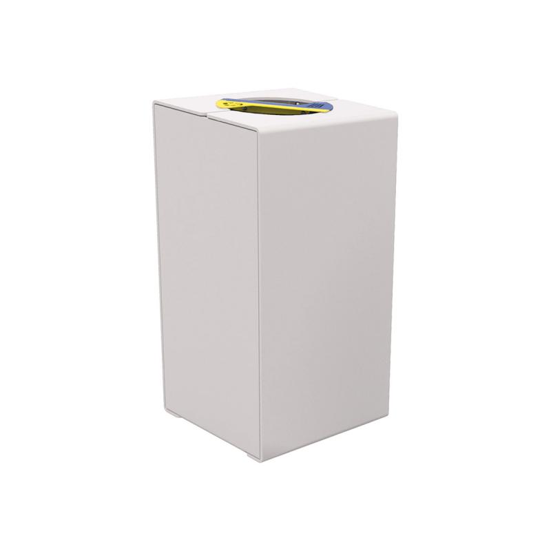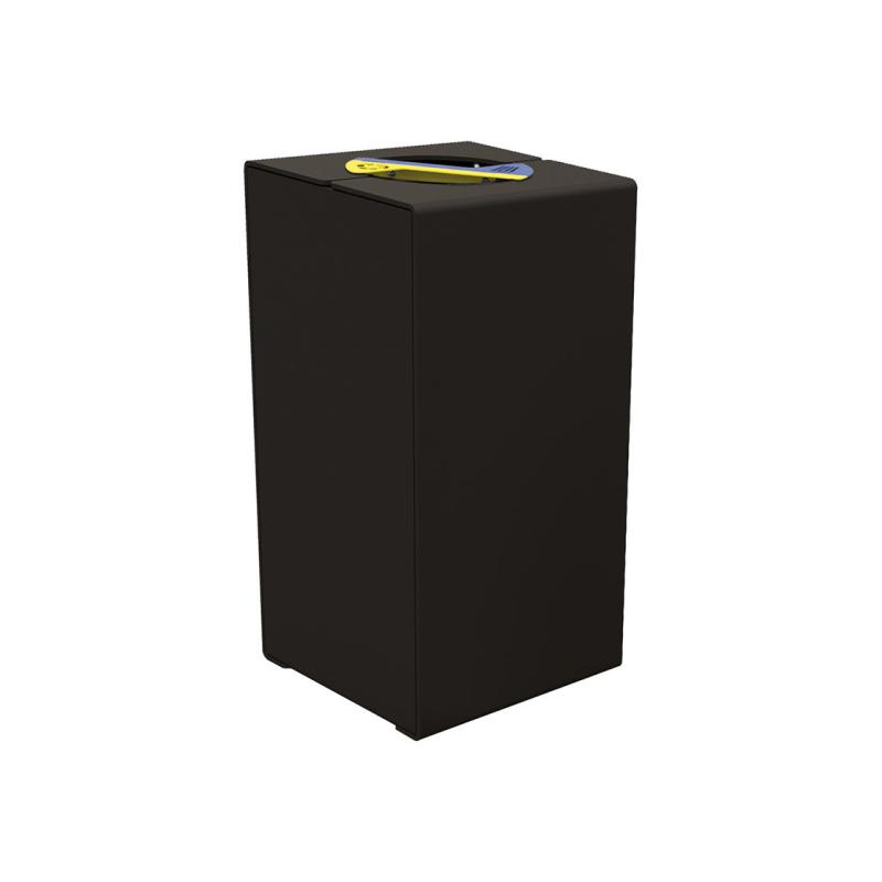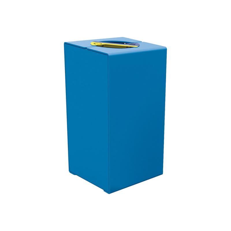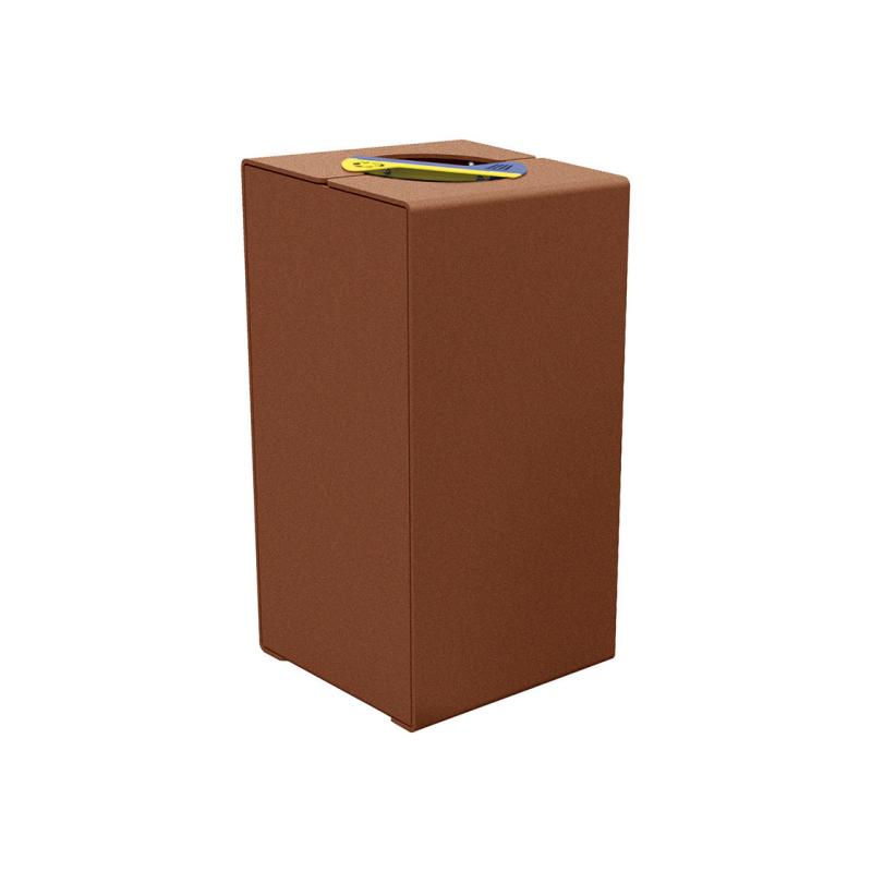 Kärlet är tillverkat i galvaniserat stål och lackerat stål för att tåla väder och dagligt slitage. Frontöppnad dörr med trekantslås ger enkel åtkomst vid tömning samtidigt som obehörig användning begränsas. KUBE rymmer två 60-literssäckar och viket ger hög kapacitet i ett kompakt format.