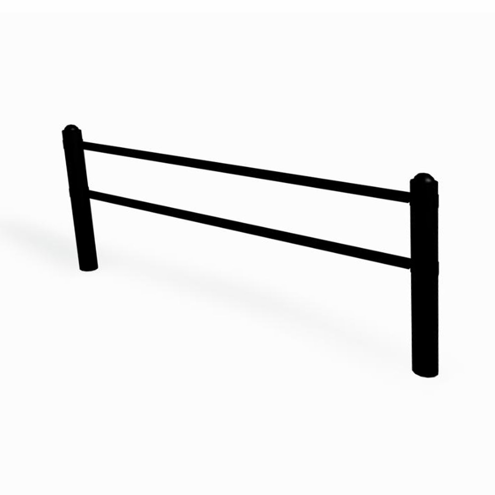 Räcket fästs med klämring på stolparna och kan vinklas för att följa terrängen. Monteras genom nedgjutning och finns i flera RAL-färger. Materialet är pulverlackerat stål som ger lång hållbarhet i offentlig miljö.