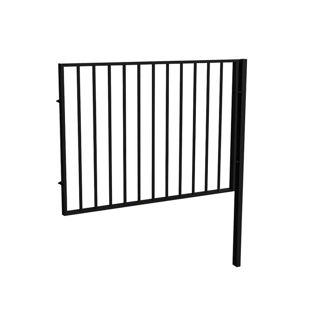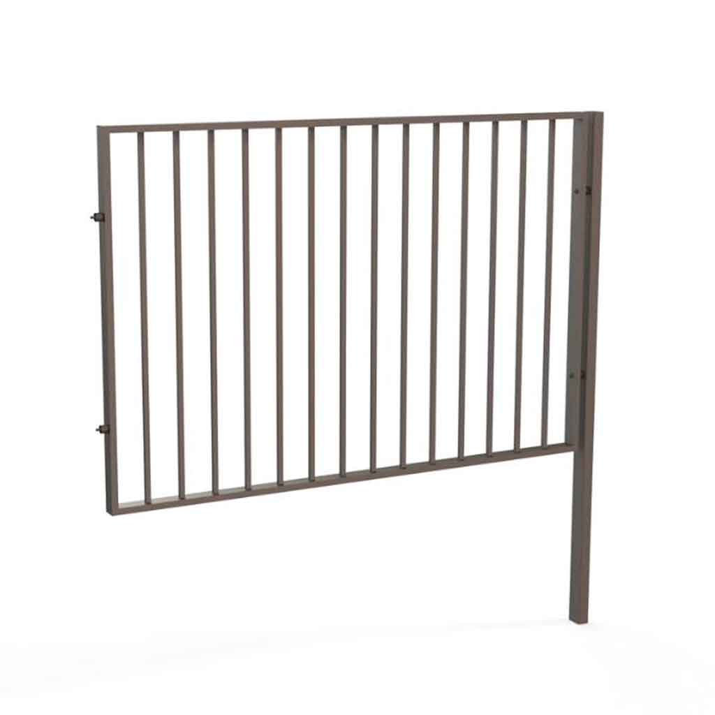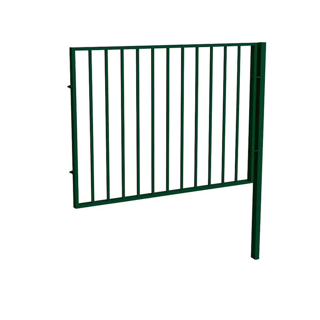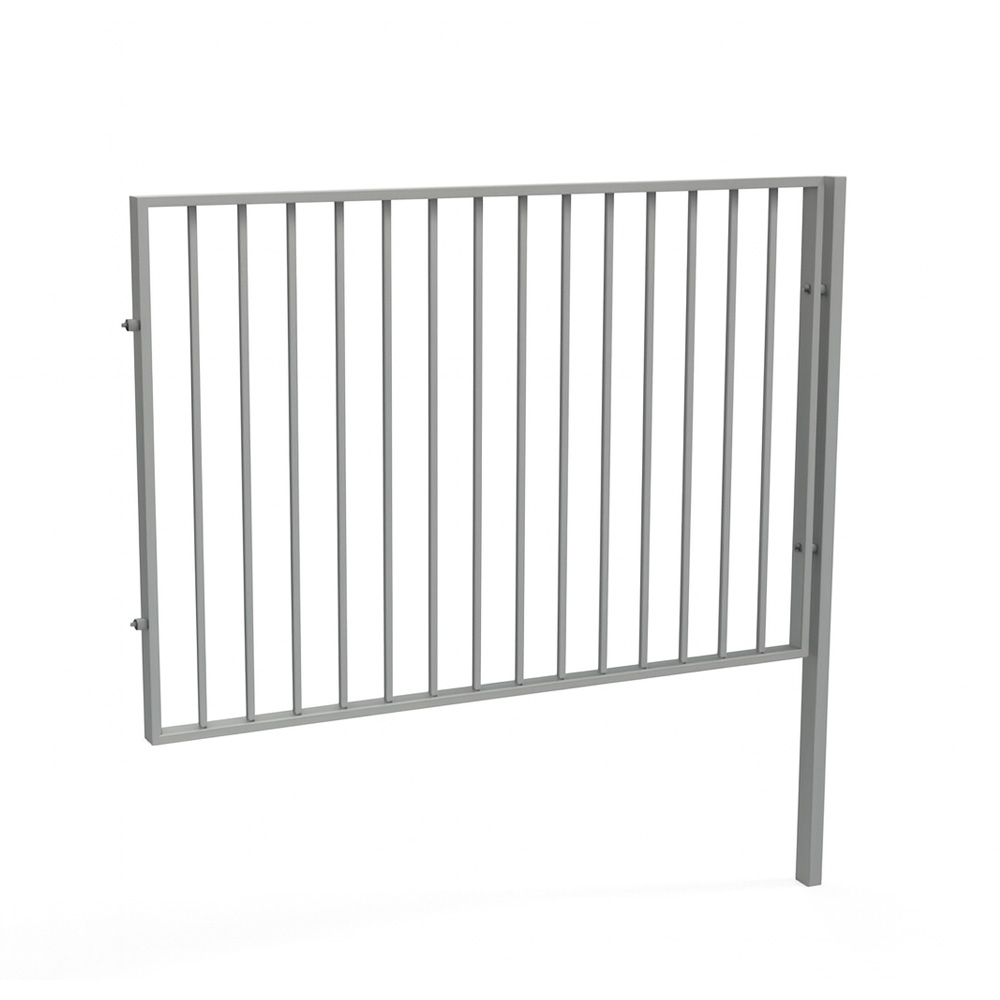 Förlängningssektionen till staket Global gör det möjligt att bygga längre avgränsningar med samma minimalistiska formspråk. De lodräta stålrören skapar ett elegant och luftigt intryck samtidigt som konstruktionen ger stabilitet och skydd.