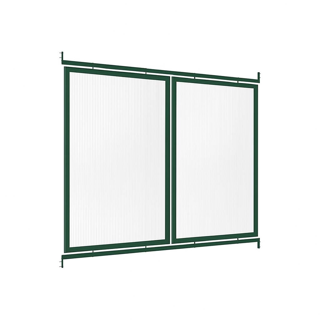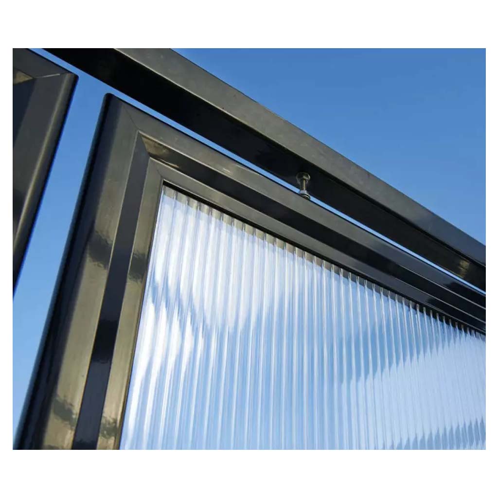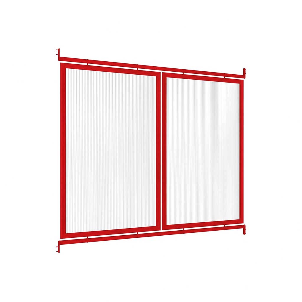 Panelerna består av en stabil ram i aluminiumprofiler och 10 mm kanalplast i UV-behandlad polykarbonat, vilket ger hög ljusgenomsläpplighet och lång livslängd utan gulning. Konstruktionen är lätt men mycket hållbar och bidrar till en mer komplett och väderskyddad miljö för gångtrafikanter.