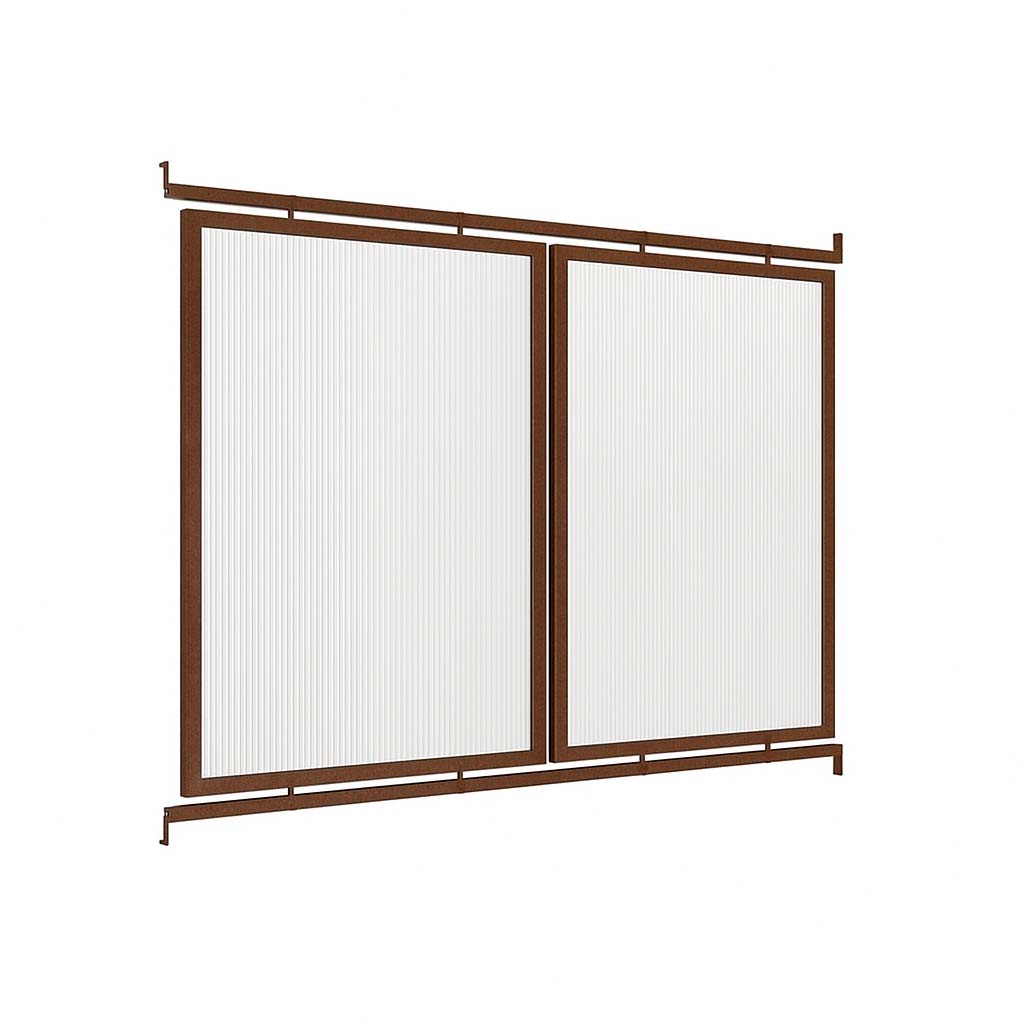 Ytan är lackerad i slitstark pulverlack i någon av våra standardkulörer – från klassiskt svart och vitt till blå, grön, brun och corten-effekt. Panelerna monteras enkelt på befintlig Millan-modul och kan kombineras på båda sidor för maximalt skydd.