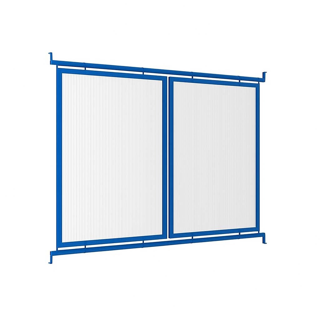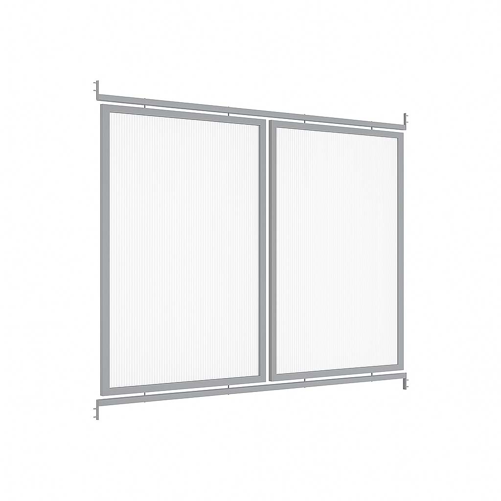 Panelerna består av en stabil ram i aluminiumprofiler och 10 mm kanalplast i UV-behandlad polykarbonat, vilket ger hög ljusgenomsläpplighet och lång livslängd utan gulning. Konstruktionen är lätt men mycket hållbar och bidrar till en mer komplett och väderskyddad miljö för gångtrafikanter.