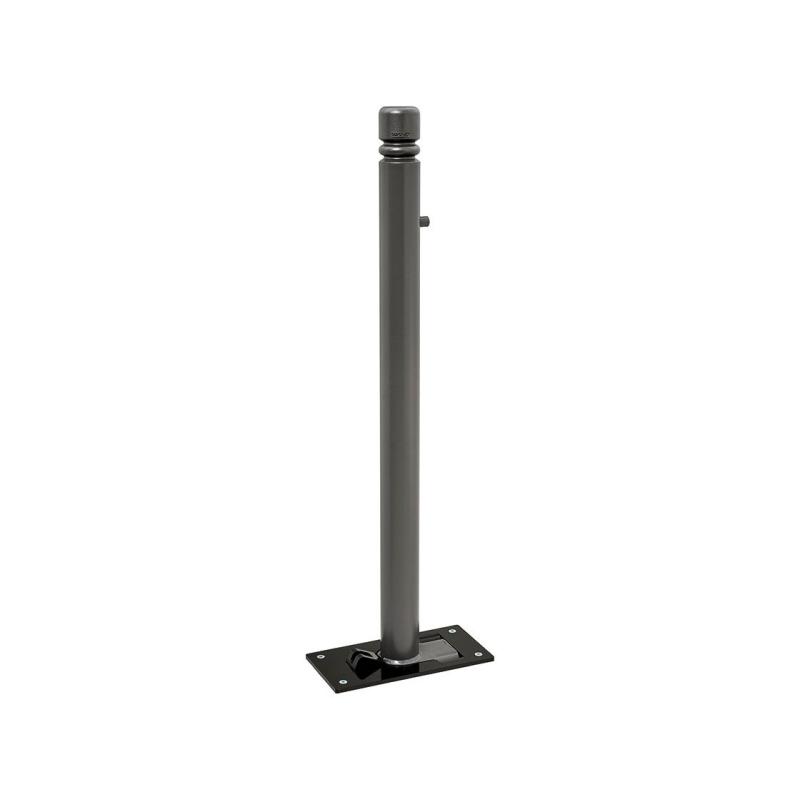 Låsmekanismen är både förzinkad och målad svart för en hållbar och diskret finish. Enkel installation genom att förankra den direkt i marken med medföljande fäststänger. För områden nära kusten rekommenderar vi ytterligare väderbehandling för stålkonstruktionen.