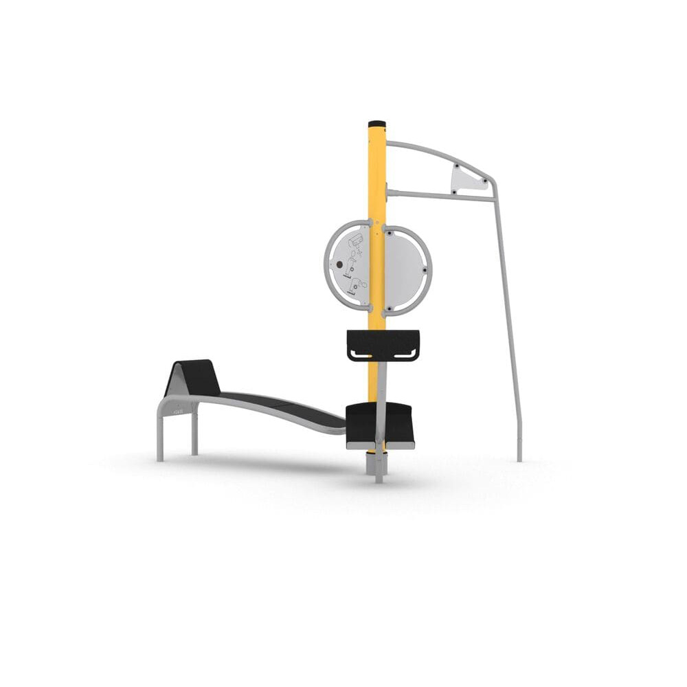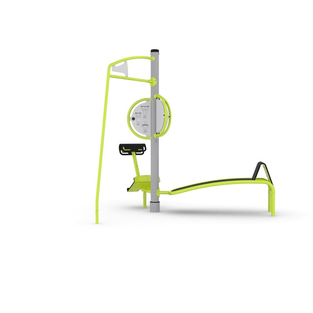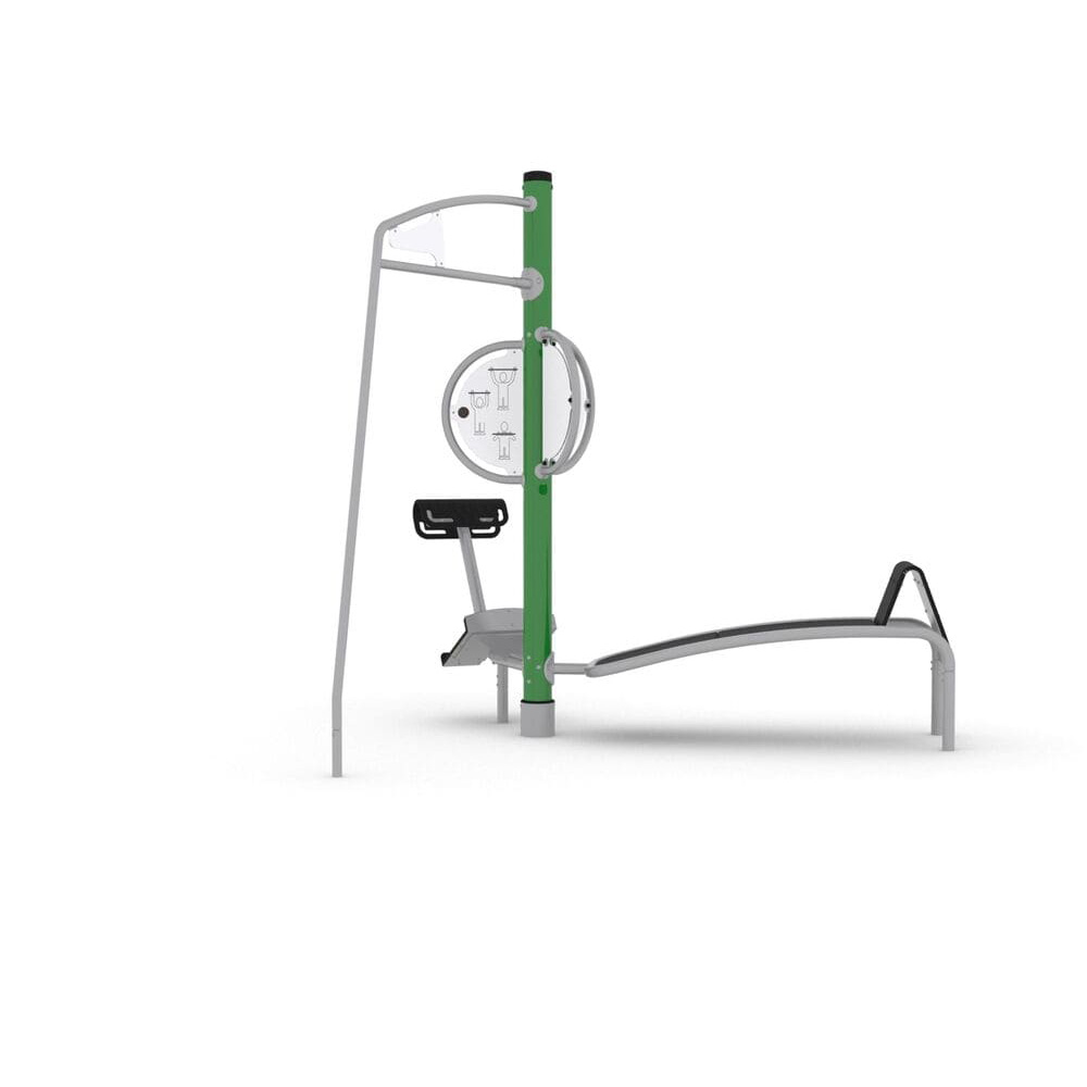 Med moderna träningsstation Gym Bico får du nästan hela kroppen tränad. Tack vare Gym Bicos design kan flera träna samtidigt och stärka överkroppen, mage och lår på ett enkelt och roligt sätt. Ett utomhusgym är tacksamt att bygga vid parken eller stranden tillsammans med flera av våra utegymsprodukter.