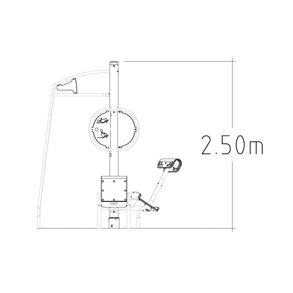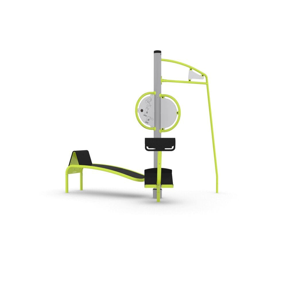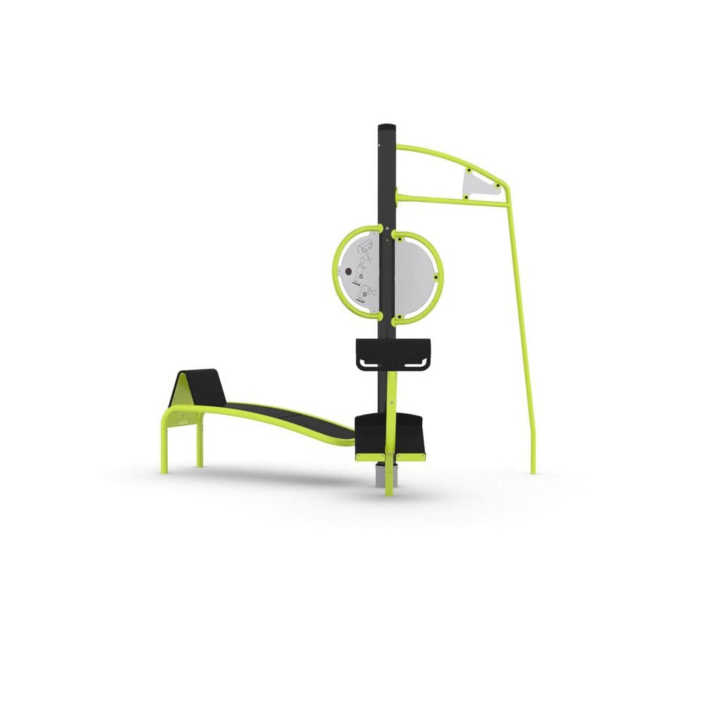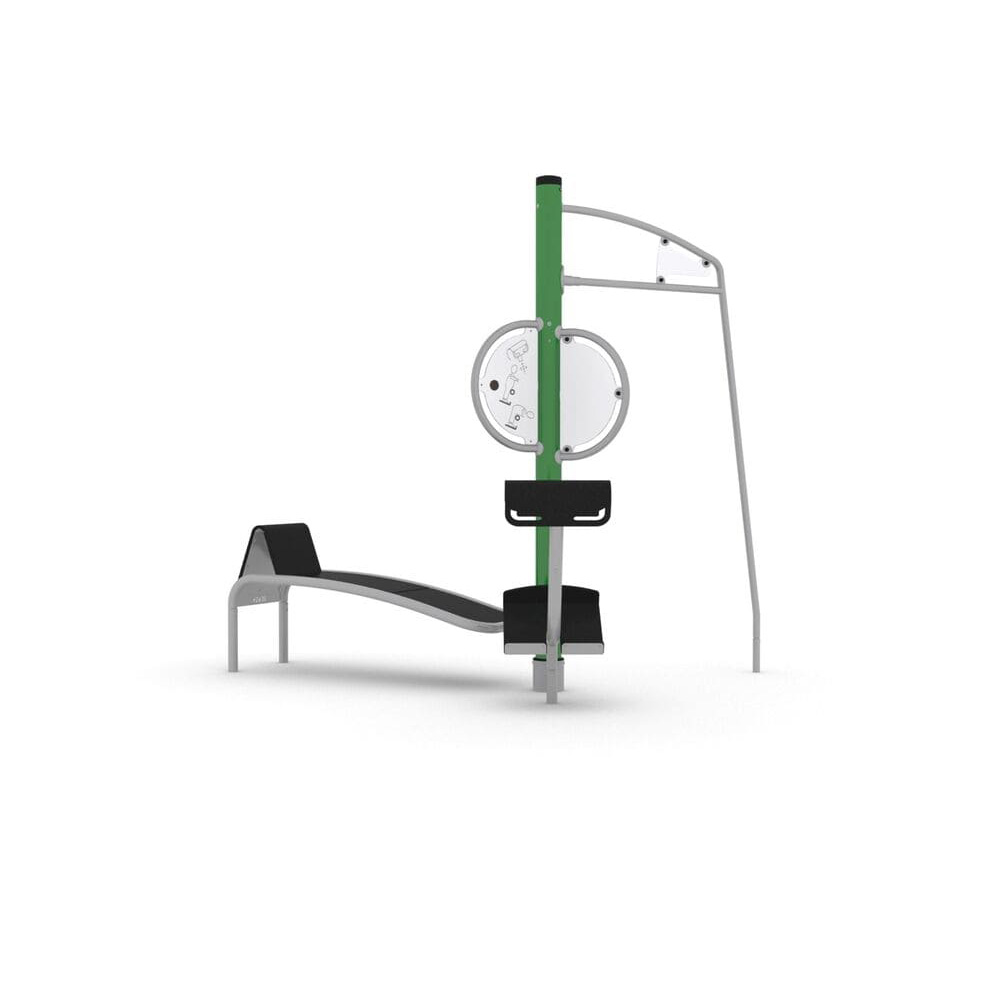 Med moderna träningsstation Gym Bico får du nästan hela kroppen tränad. Tack vare Gym Bicos design kan flera träna samtidigt och stärka överkroppen, mage och lår på ett enkelt och roligt sätt. Ett utomhusgym är tacksamt att bygga vid parken eller stranden tillsammans med flera av våra utegymsprodukter.