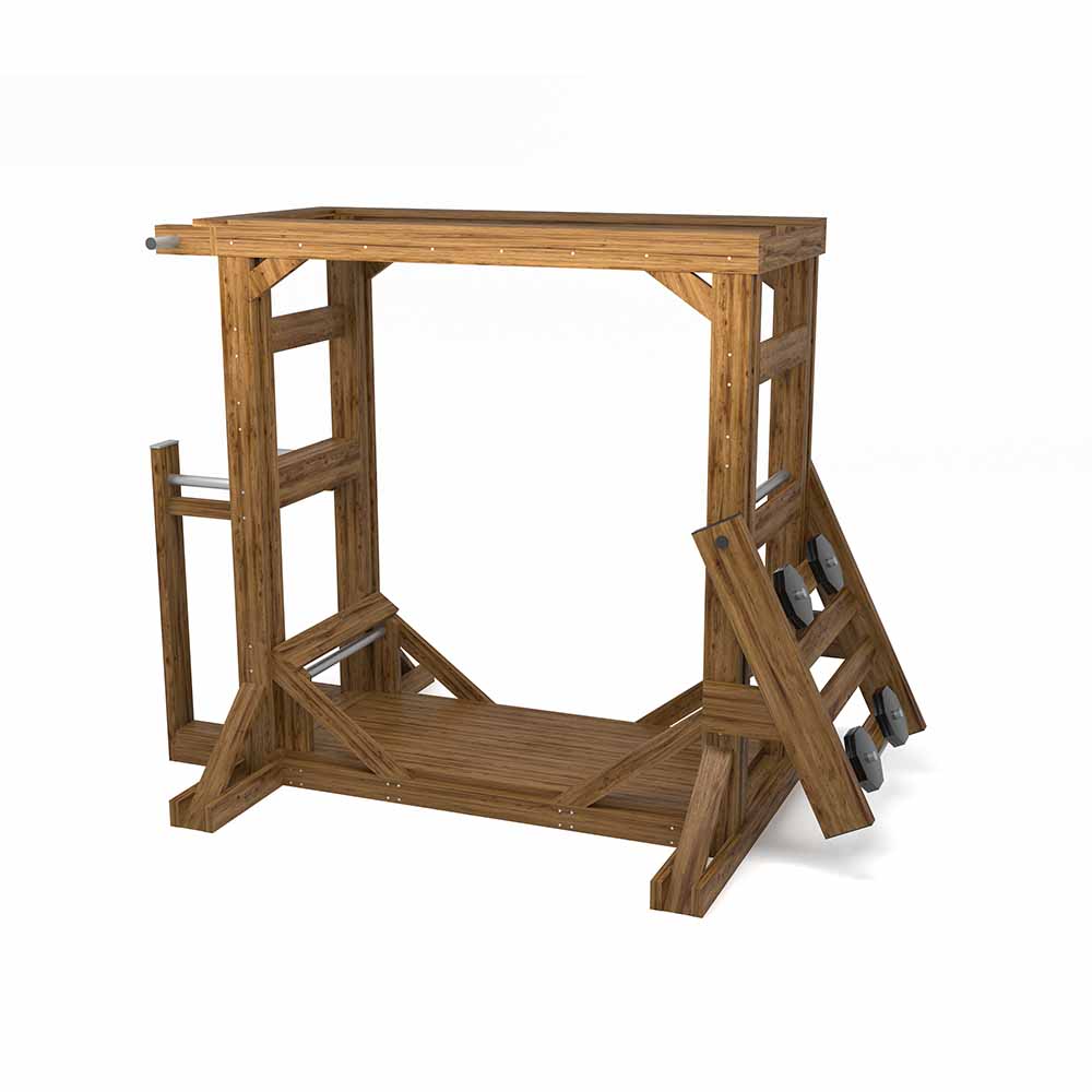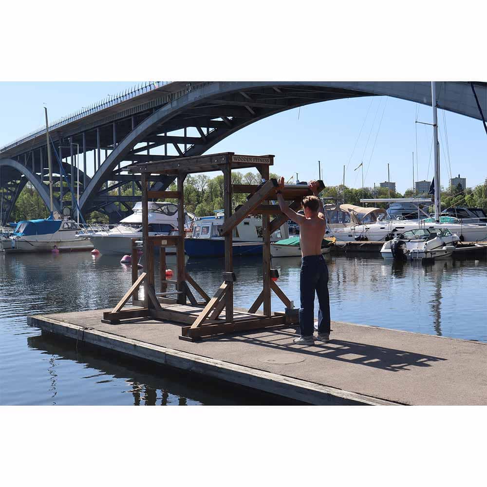 Den fasta vikten i momentarmen på 20 kg ger extra belastning. Alla delar är byggda i gotländskt kärnvirke för hög hållbarhet och naturligt utseende. Ett utmärkt alternativ för skolor, kommuner och parkmiljöer.