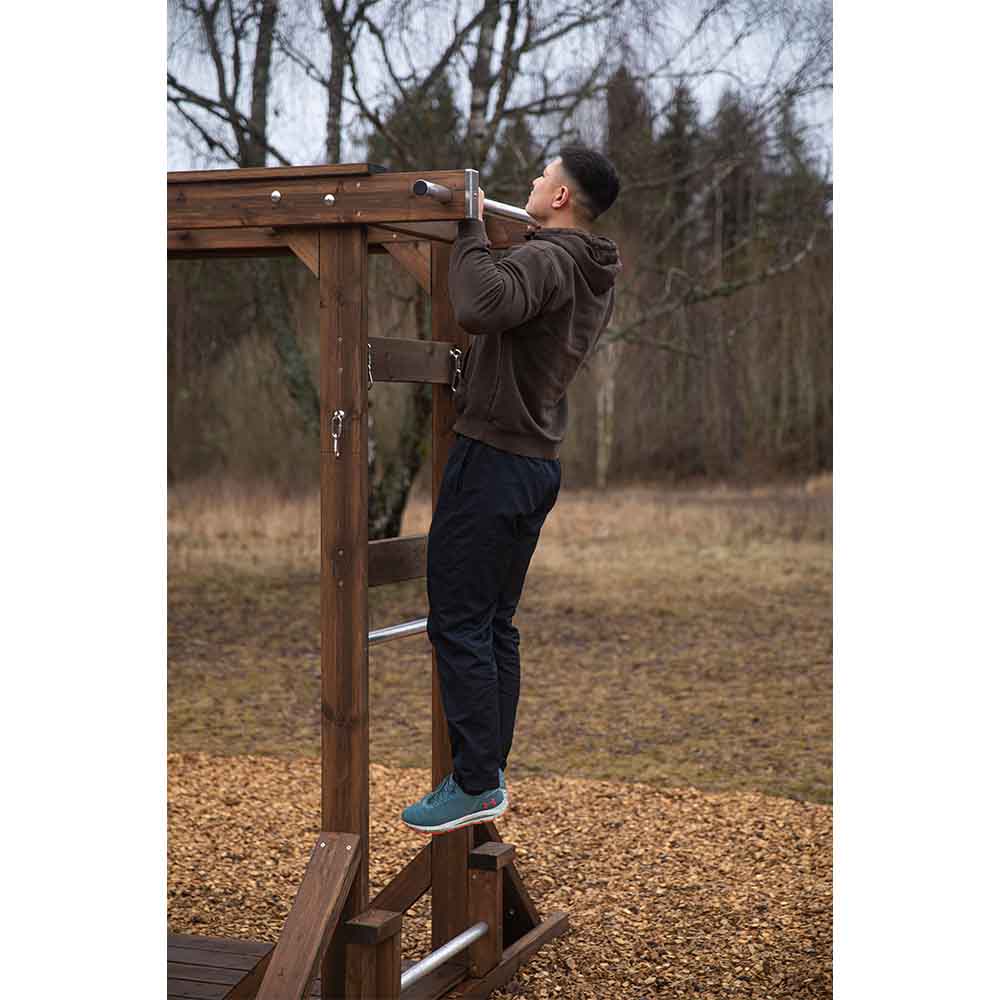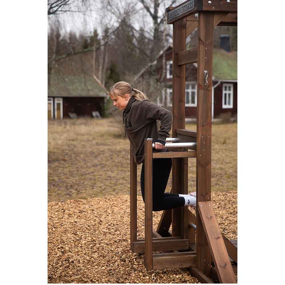 Kroppskraft – naturligt utomhusgym i trä med armgång, chins & dips