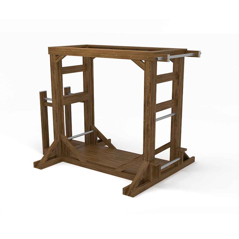 Den fasta vikten i momentarmen på 20 kg ger extra belastning. Alla delar är byggda i gotländskt kärnvirke för hög hållbarhet och naturligt utseende. Ett utmärkt alternativ för skolor, kommuner och parkmiljöer. Det finns fler träningsstationer att välja mellan i vår serie med Utomhusgym i trä.